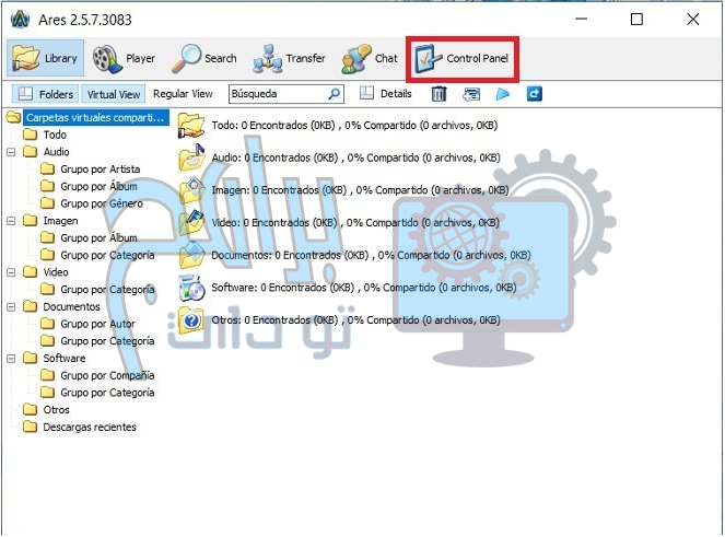 افتح لوحة التحكم في برنامج Ares