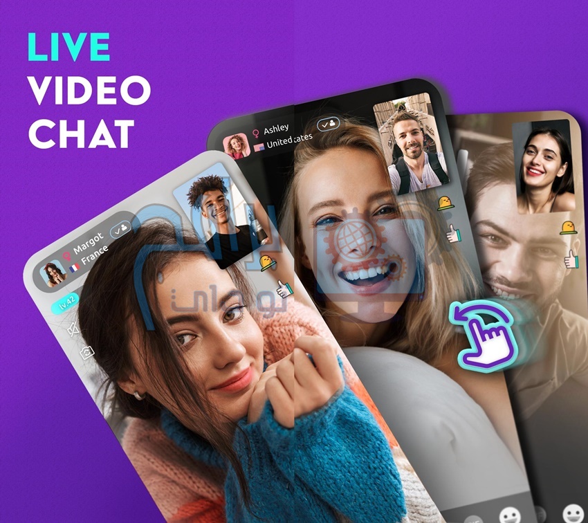 - يشمل التطبيق على عدد كبير من بلدان العالم، هذا كما أنه يحتوي على ميزة الترجمة الفورية للدردشة، وذلك حتى لا تقف اللغة عائق أمام المستخدمين.