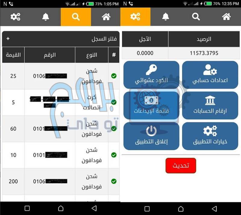 - يتيح لك أن تشحن رصيد لأى ماكينة فورى أو حساب أندرويد فورى وجميع المحافظ مثل فودافون كاش وغيرها لكل التجار برسوم أقل من البريد نفسه وجميع ماكينات الشحن الأخرى .