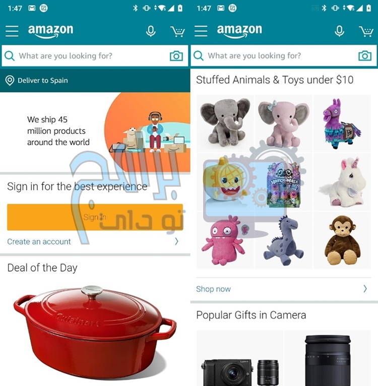- والآن سوف تستمتع بتطبيق أمازون ويمكنك شراء البعض من المنتجات.
