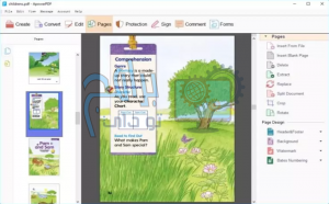 ورسم الخطوط والأشكال الأخرى وإدراج الروابط وحذف القائمة الصفحات ، وإدراج صفحات جديدة ، والاقتصاص ، والتدوير ، وإضافة رأس وتذييل الصفحة ، وإضافة صورة خلفية ، وإضافة علامة مائية ، وتوقيع مستند PDF ، وحمايته بكلمة مرور.