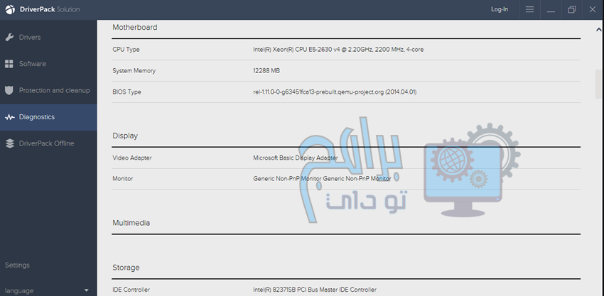 علاوة على ذلك ، فإن التشخيصات التي أجراها برنامج درايفر باك سوليوشن مفيدة للغاية للحصول على نظرة عامة على أداء النظام خاصة فيما يتعلق بتقييم درجة الحرارة وإدارة الطاقة وخصائص نظام التشغيل ومراقبة وقت التشغيل والشبكة و BIOS والأجهزة الطرفية الأخرى .