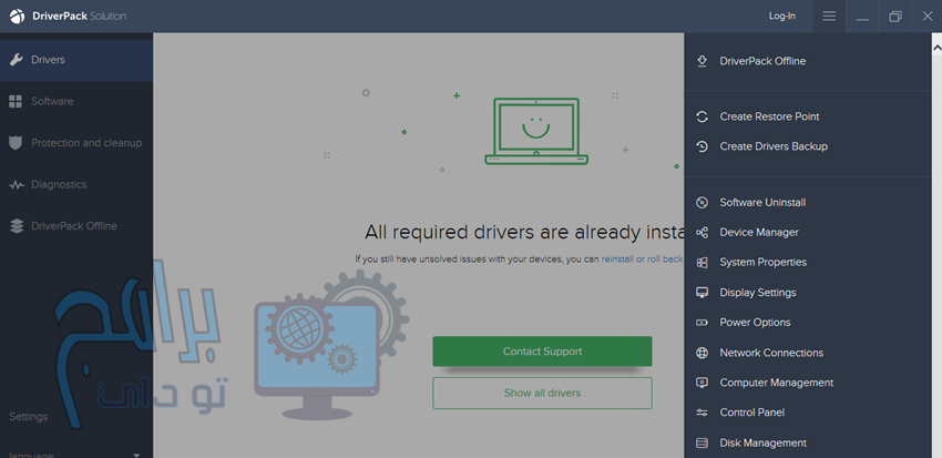- يحتوي برنامج درايفر باك سوليوشن على الكثير من الأدوات الهامة والتي تعمل على تعريف الأدوات.