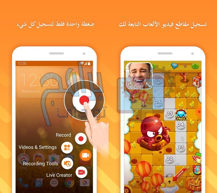 يعد هذا البرنامج هو أحد البرامج الهامة والقوية التي تساعد في تسجيل الصوت و تسجيل الفيديو و تسجيل شاشة الهاتف في نفس الوقت، وكذلك يعمل البرنامج على تدعيم الكاميرا الأمامية أثناء التشغيل وذلك من أجل أن يقوم بإظهار صورتك أثناء قيامك بشرح أحد الأشياء وتكون هذه الصوة في جانب الشاشة وذلك من أجل الا تغطي الشاشة أثناء التسجيل.