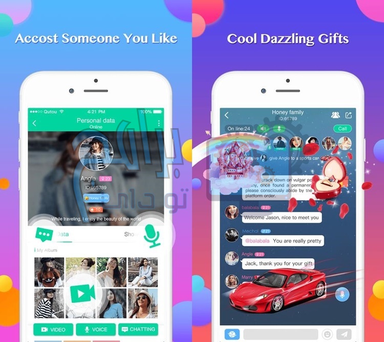- تستطيع أن تقوم بعمل دردشة صوتية او دردشة عن طريق الفيديو سواء بالغرفة الخاصة أو غرفة الدردشة العامة.