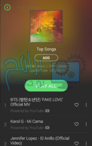 - عندما تقوم بالضغط على زر القلب فإنه يقوم بصورة تلقائية بإضافة الملف الموسيقي إلى قائمتك المفضلة.