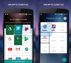 تطبيق parallel accounts هو أحد البرامج المجانية الرسمية الموجودة والمتوفر ببساطة على متجر جوجل بلاي google play الشهير و الخاص بالاندرويد. يعتبر التطبيق واحدا من أسهل تطبيقات إستنساخ التطبيقات و القيام بتشغيلها في وقت واحد و الذي تجده بسهولة على متاجر الاندرويد لكونه تطبيق رسمي ، و يعمل على أكثر من نظام تشغيل للأجهزة المختلفة .