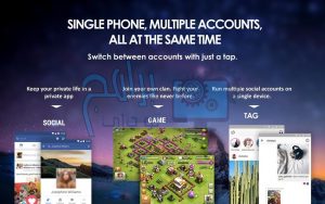 هذا التطبيق يتيح لك إستخدام أكثر من حساب من مواقع التواصل الإجتماعي الشهيرة ، مثل فيس بوك Facebook و انستجرام instagram و واتس آب whats app و تويتر tweeter و الكثير غيرها ، ليس فقط برامج التواصل الاجتماعى بل بالإضافة لعدد كبير جدا من التطبيقات و الألعاب التي يمكنك أن تسجل عليها حسابين مختلفين .