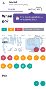- فقط قم بالضغط على قائمة “مغادرة” ثم اختار منها “الشهر الأرخص” ليدلك على أرخص شهور السنة لعملية الحجز.