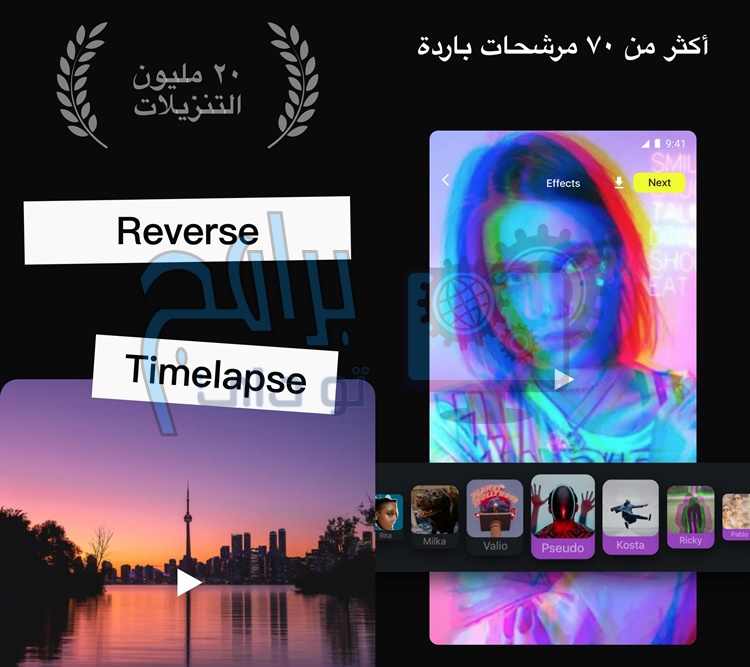 - يوفر العديد من التأثيرات على مقاطع الفيديو التابعة لك.