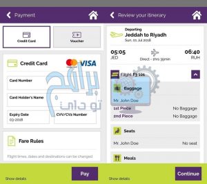 - سداد قيمة التذاكر، الحصول على بطاقات صعود الطائرة.