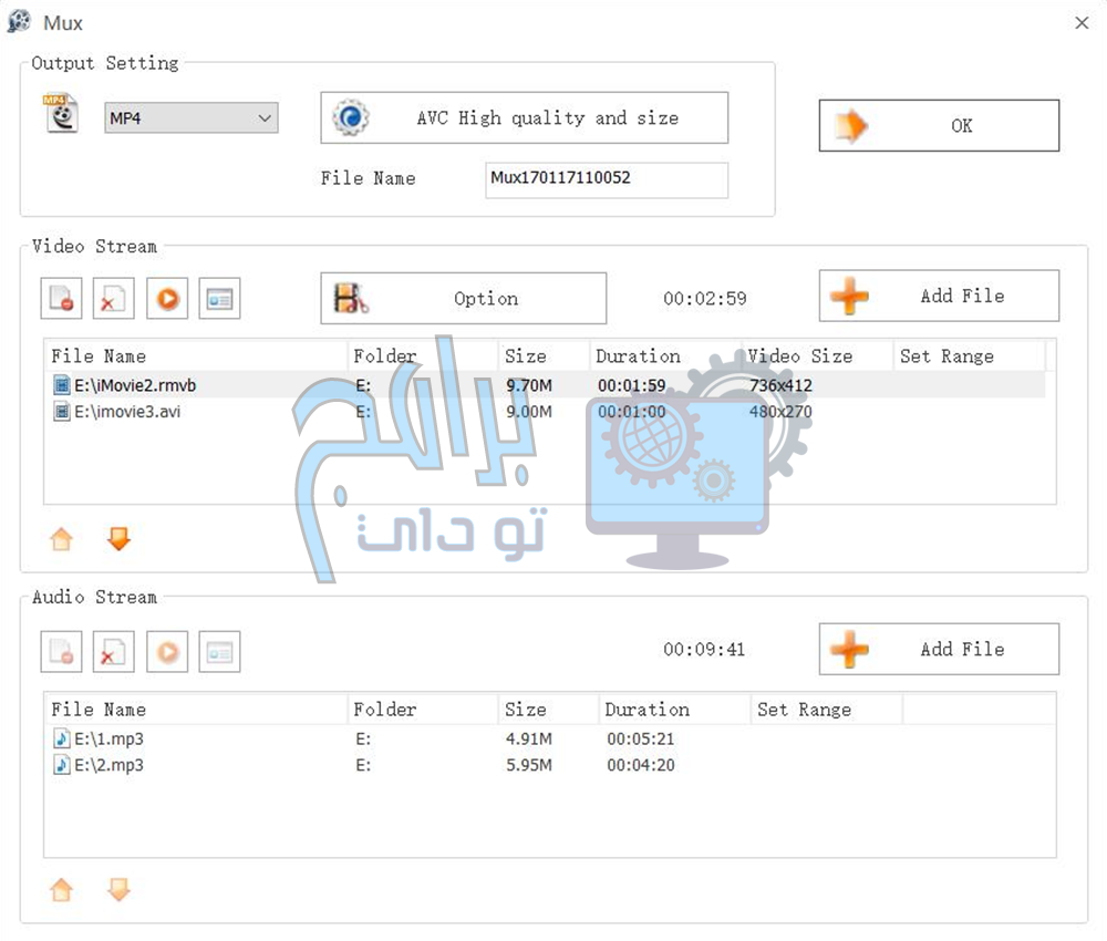 بصرف النظر عن دعم تنسيقات الملفات الرائدة لملفات النصوص والصور والصوت والفيديو ، يدعم برنامج Format Factory ملفات AVI-Mux. على هذا النحو ، يمكنك استخدام محول ملفات الفيديو والصوت لدمج العديد من مقاطع الفيديو أو ملفات الموسيقى لإنشاء فيلم أو مقطع صوتي أو درجة خلفية أطول. يمكن تحويل الترجمة إلى ملف نصي. هذه الميزة مفيدة لإنشاء نسخ احتياطية يمكن الوصول إليها بسهولة.