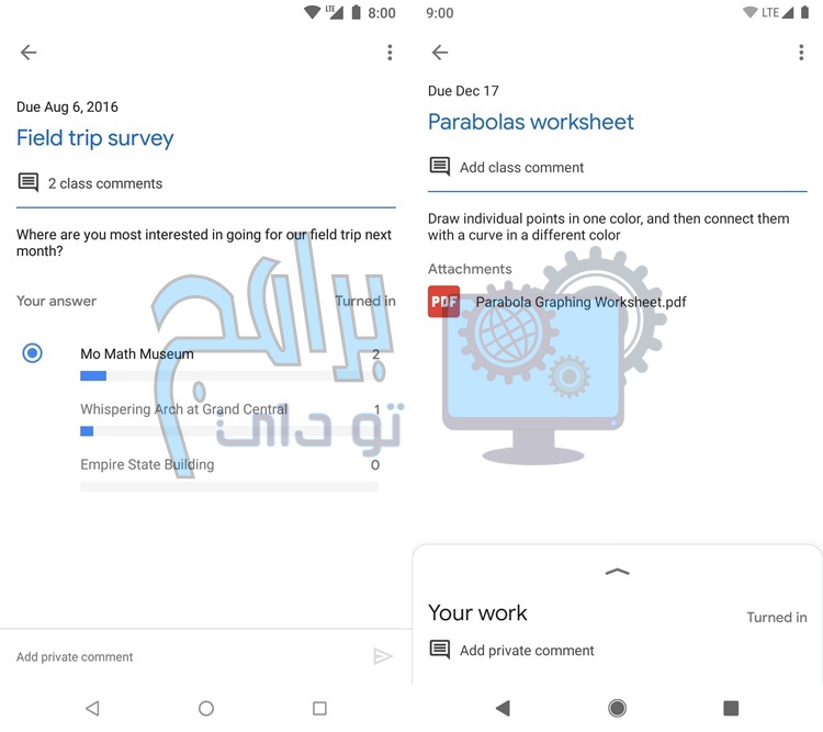 من هناك ، يمكن للمدرس توجيه أعمال وأنشطة الفصل بشكل عام ، أو أي طالب على وجه الخصوص. على أي حال ، إذا كنت لا تزال غير قادر على الالتفاف حول برنامج جوجل كلاس روم ، على الرغم من أدائه البديهي ، يمكنك اللجوء إلى أي من الأدلة في ملف PDF المتاح على الإنترنت أو مقاطع الفيديو التعليمية على YouTube.