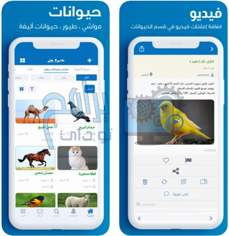 - التطبيق يشمل على كافة أنواع السلع والخدمات مثل السيارات والأثاث والطيور والحيوانات والمستلزمات الشخصية وغيرها.