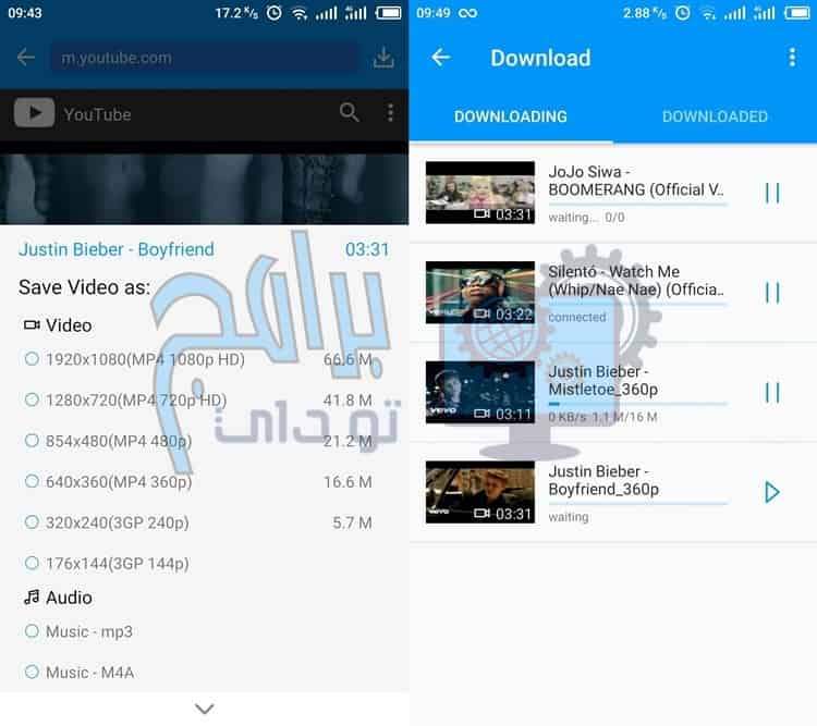 جرب أيضا : تحميل برنامج سناب تيوب Snaptube لتنزيل الفيديوهات مجانا