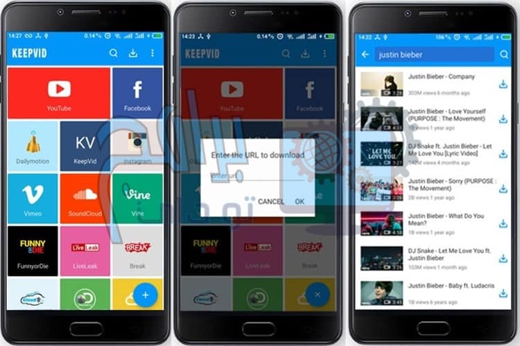 ونحن لا نبالغ لأننا نشير إلى تعدد استخداماته والمجموعة الواسعة من الوظائف المتوفرة في برنامج KeepVid . هذا ما ستجده إذا قمت بتثبيته على هاتفك الذكي :