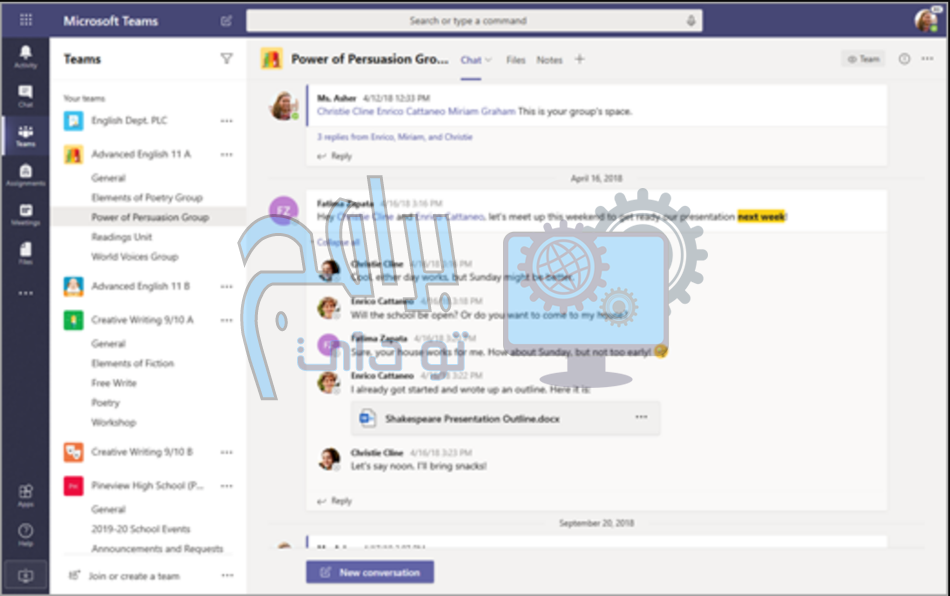 - يمكنك من خلال برنامج مايكروسوفت تيمز مشاركة الملفات والإستقصاءات مع زملائك في العمل.