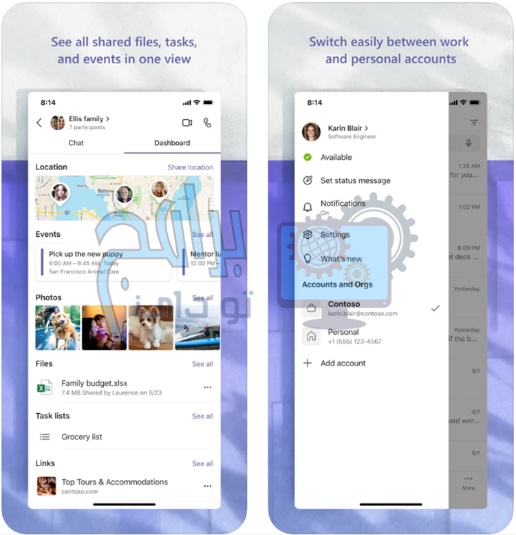 - يمكنك الدردشة مع زملاء العمل عندما تقوم بتحميل برنامج مايكروسوفت تيمز على هاتفك المحمول.