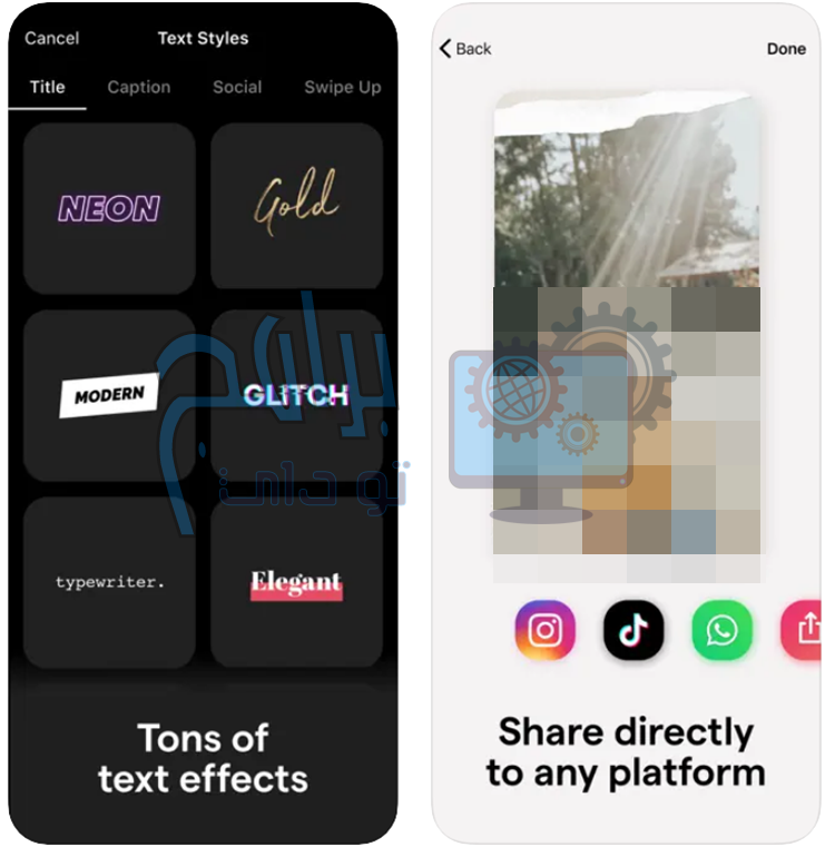 علاوة على ذلك ، يحتوي التطبيق أيضًا على ميزة لكتابة نص على الصور أو مقاطع الفيديو لسرد قصتك بسهولة وجعل مشاهدي الفيديو يفهمون المحتوى الذي تريد نشره.