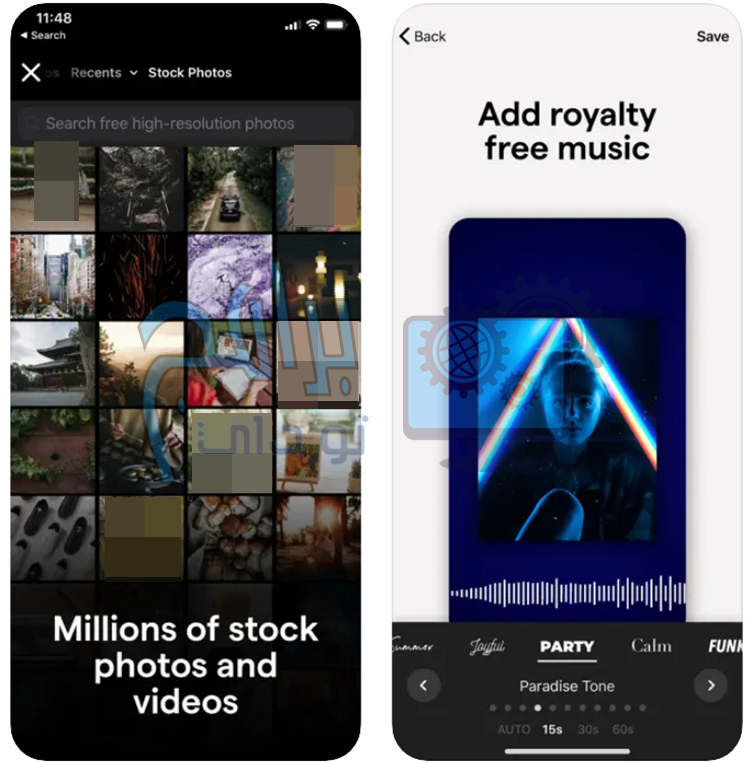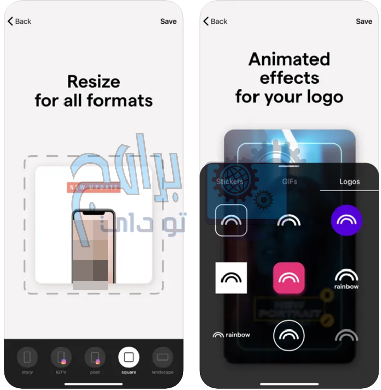 - ما عليك سوى إضافة الصور ومقاطع الفيديو الخاصة بك إلى تصميماتنا ، أو الاختيار من مكتبة الصور المخزنة لدينا لإبراز شخصيتك أو شركتك!