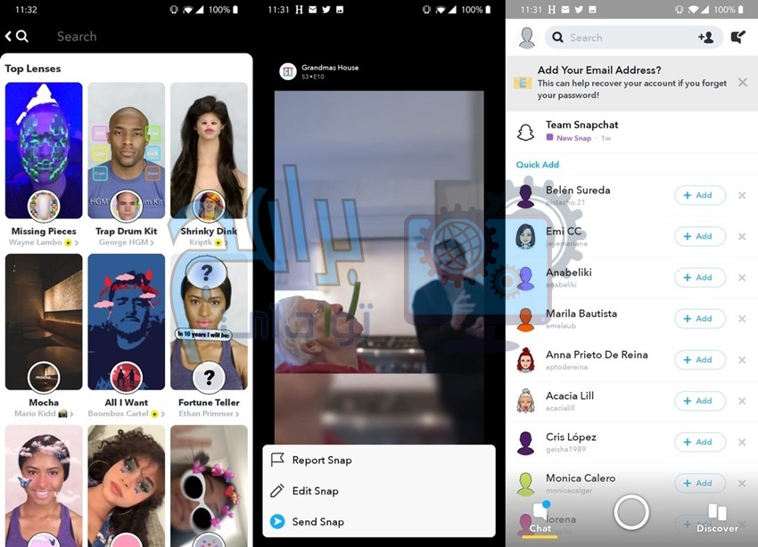 - يدعم برنامج سناب شات إمكانية إضافة العديد من الأصدقاء من خلال البريد الإلكتروني أو الاسم.