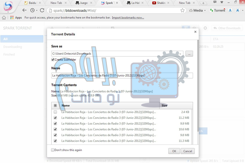 وظائف التحميل : أحد الجوانب الأكثر إثارة للاهتمام في متصفح Baidu Spark Browser هو أنه يتيح لنا البحث عن ملفات التورنت وتنزيلها من المتصفح نفسه. علاوة على ذلك ، يسمح لنا بتنزيل مقاطع الفيديو وتحويلها إلى تنسيق MP3 دون مغادرة برنامج Baidu Spark Browser. إنه سهل مثل الوصول إلى YouTube والنقر على زر الوسائط في المتصفح. سيتم تنزيل الفيديو على الفور على جهاز الكمبيوتر الخاص بنا.