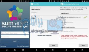 - القدرة على ربط حسابك برقم هاتفك أو عنوان بريدك الإلكتروني لتسهيل عثور مستخدمي تطبيق SumRando Messenger الآخرين عليك. ولكن لا يوجد رابط إلزامي بين رقم هاتفك و / أو عنوان بريدك الإلكتروني!