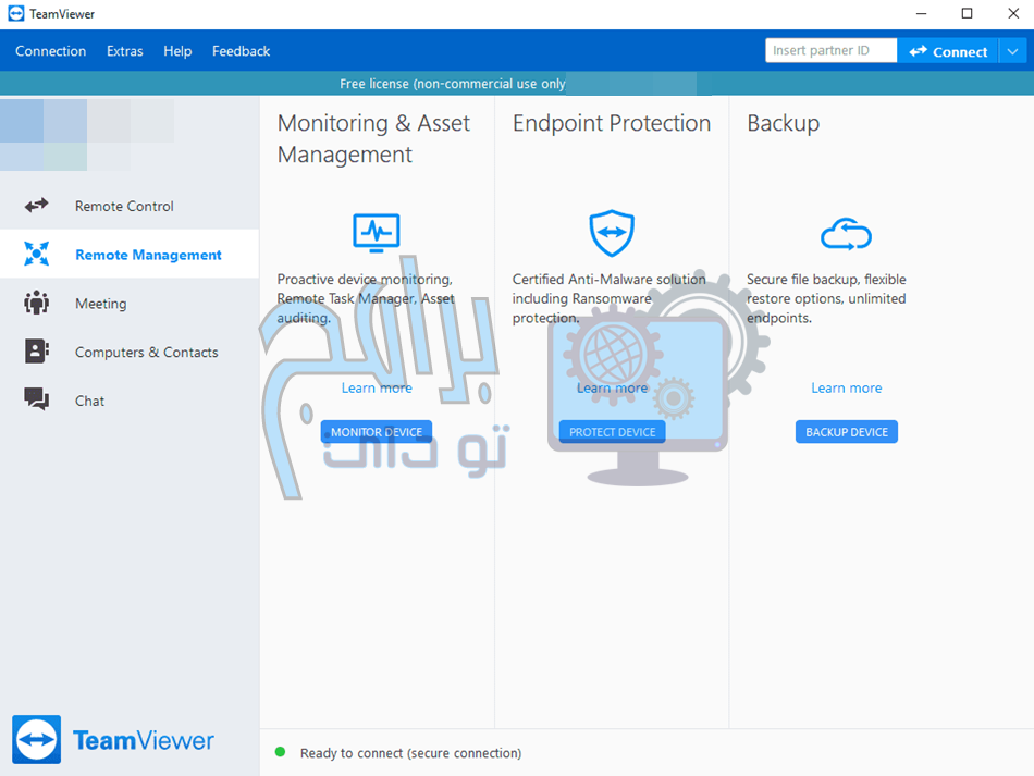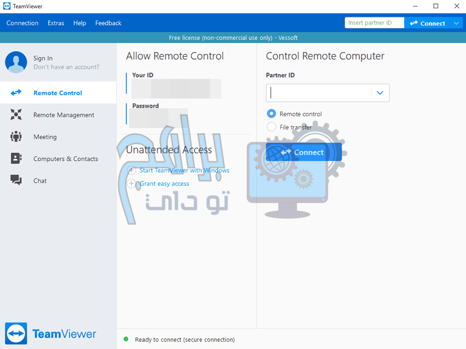 باستخدام برنامج TeamViewer ، ستتمكن من الحصول على عميل الوصول عن بُعد ، ويمكنك الاتصال بأجهزة الكمبيوتر والأجهزة المحمولة الأخرى من الويندوز .