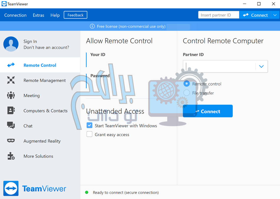 باستخدام برنامج TeamViewer ، ستتمكن من الحصول على عميل الوصول عن بُعد ، ويمكنك الاتصال بأجهزة الكمبيوتر والأجهزة المحمولة الأخرى من الويندوز .