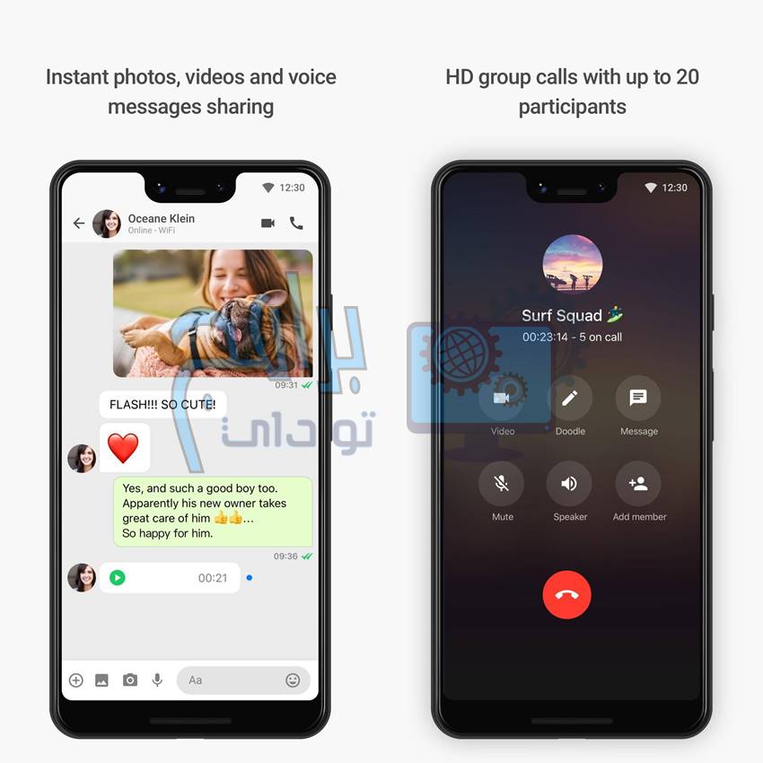 - وتستطيع أن تقوم بتشغيل مكالمة فيديو جماعية يصل عدد الأفراد بها الى 20 فرد.