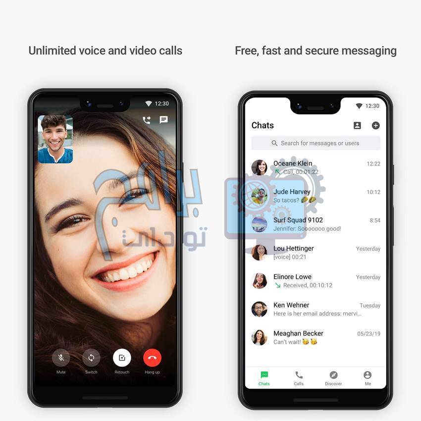 ويُتيح لك هذا التطبيق عدد غير محدود من المكالمات الصوتية وعدد غير محدود من مكالمات الفيديو، وبذلك تستطيع التواصل مع كل من تريد وبطريقة مجانية تماماً حيث لا يتطلب إجرائك لأي مكالمات صوتية أو أي مكالمات فيديو لدفع أي رسوم.
