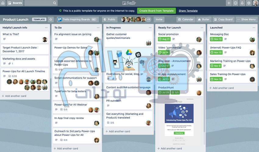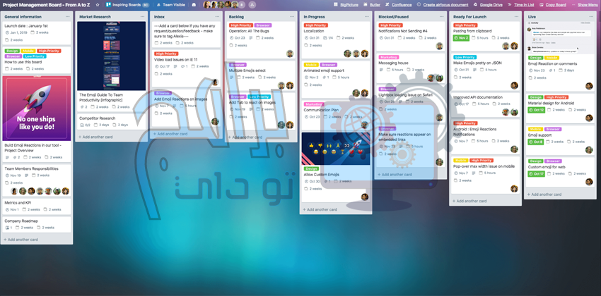 هذه هي أهم إمتيازات ووظائف برنامج Trello الرئيسية المتوفرة في هذا التطبيق :