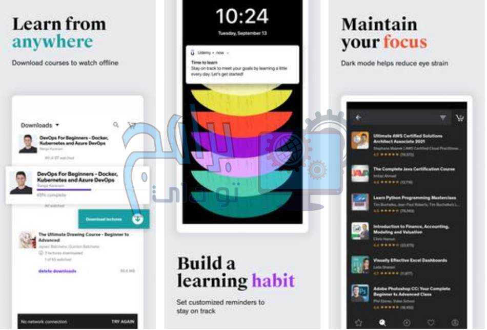 - برنامج Udemy مناسب لأنه متاح للاستخدام على الهواتف الذكية.