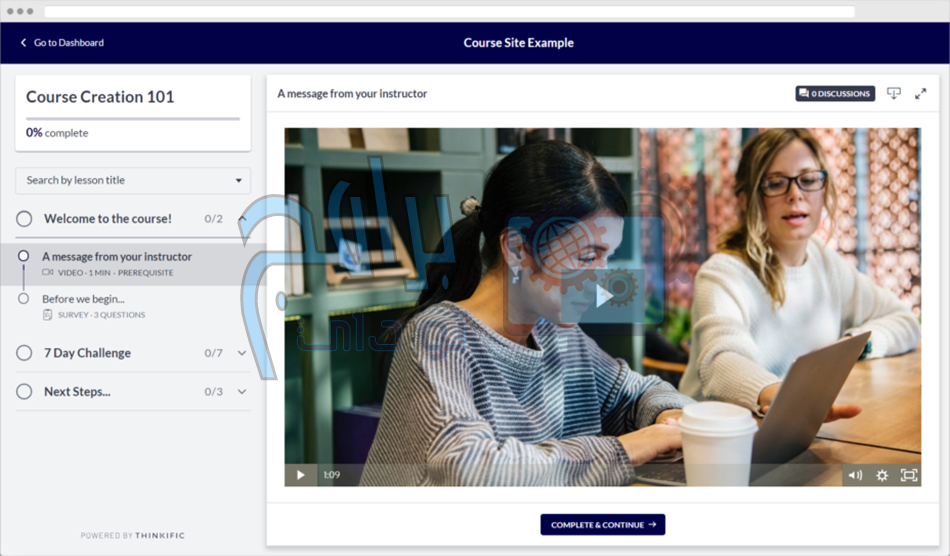 يستمتع الطلاب أيضًا بالميزات التفاعلية مثل لوحات المناقشة للتواصل مع المدرسين وغيرهم من المسجلين في الدورة التدريبية.
