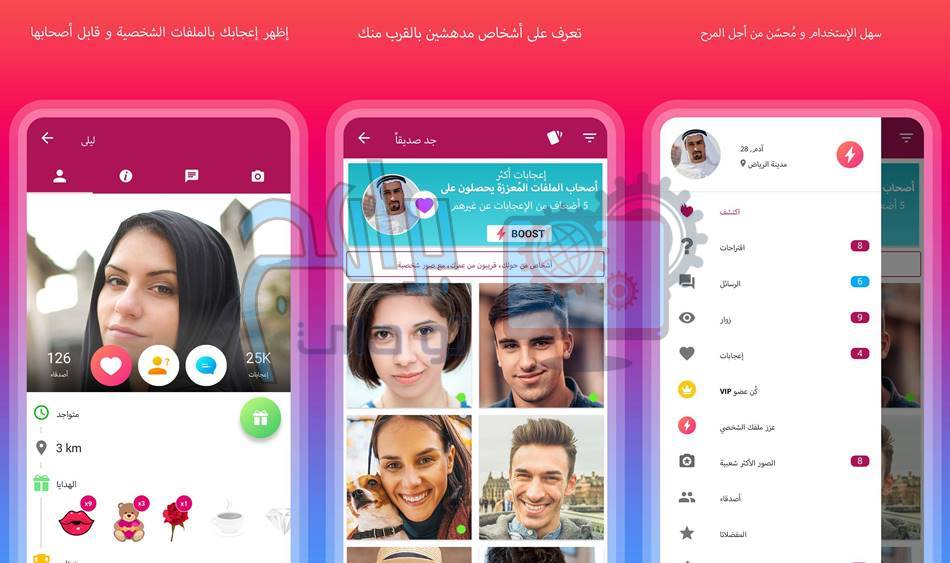 بغض النظر عما تبحث عنه ، أو عمن تبحث عنه ، يمكنك العثور على مجموعة من الأشخاص في محيطك المباشر. يسمح لك هذا بالبحث عن العلاقات ، أو المواعيد غير الرسمية ، أو المواعيد الشبيهة بالصداقة ، أو حتى العلاقات الدائمة والزواج. في حين أنه يشترك في بعض الميزات المشتركة مع التطبيقات الشهيرة مثل برنامج Badoo و برنامج Skout ، إلا أنه يختلف من حيث أنه يحتوي على المزيد من الميزات ويسمح لك بمقابلة مجموعة واسعة من الأشخاص والاختلاط بهم.