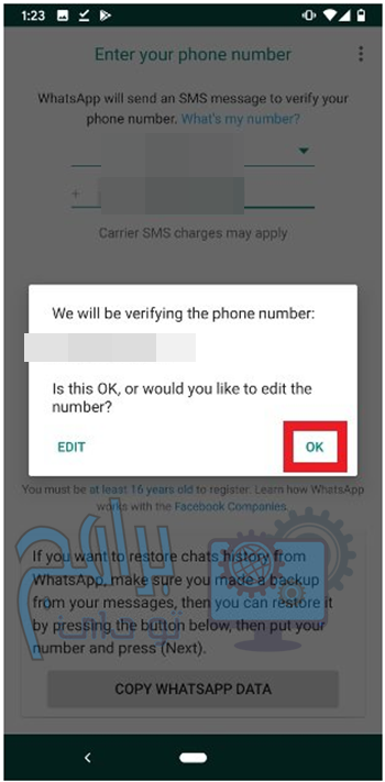 - سيُطلب منك بعد ذلك تأكيد صحة رقم الهاتف الذي كتبته. تحقق منه واضغط على موافق.