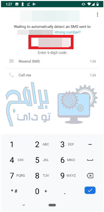 - أدخل الآن رمز التحقق الذي تم إرساله إليك.